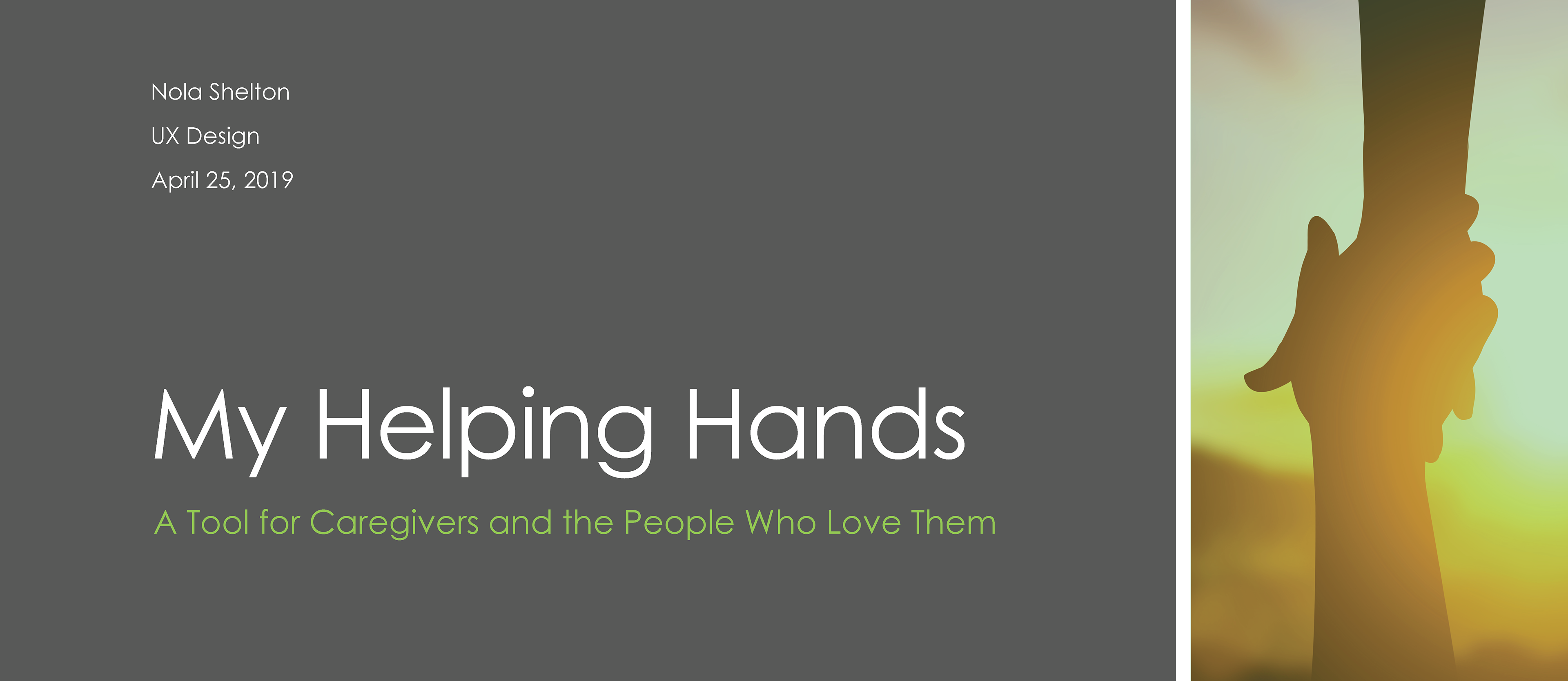 A research study was performed (as a course project) to learn about caregivers, their needs & challenges, and how we might help them. As a result, the My Helping Hands website was created. (still in development).